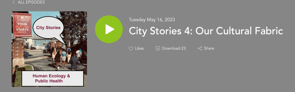 In this class we ask the essential question of what makes a city a thriving, liveable, and sustainable place. By using both quantitative as well as qualitative methods we explore the impact of different social and environmental determinants of health. Students showed their understanding by contextualizing and synthesizing from the many experts that we visit and interview. The podcast is one means of evaluating and sharing our work. Click on image below to gain access